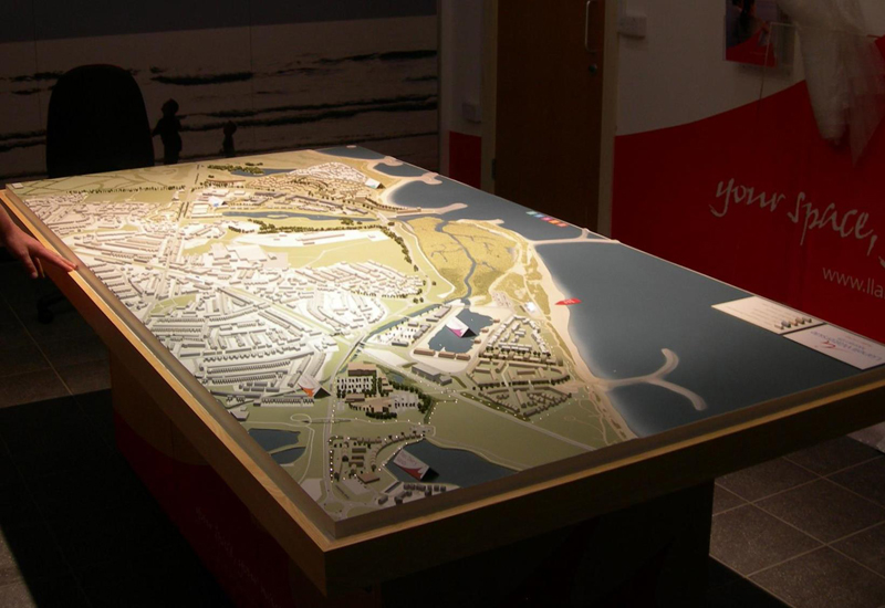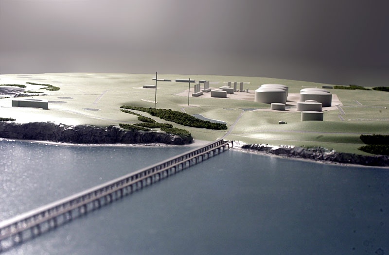 LNG Gas Terminal This landform model was created for an exhibition informing the local community about a major redevelopment of a disused refinery site on the West Wales coast line.