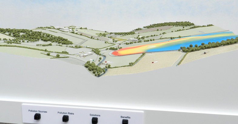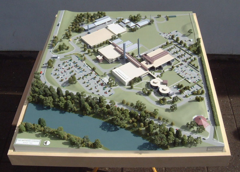 Water management educational model 1:1000 scale masterplan model. This interactive model was commissioned by the NFU as a visual demonstration to farmers of good water management practices on their land. The model shows two different catchments, one illustrating a high risk landscape with poor farming practices and the other showing a low risk landscape where the delivery of good practice minimises risks. The buttons on the front of the model activate LEDs set in the landscape to highlight different aspects of land management practice. Architectural Models Exhibition Models Industrial Models and so much more... View our Gallery >