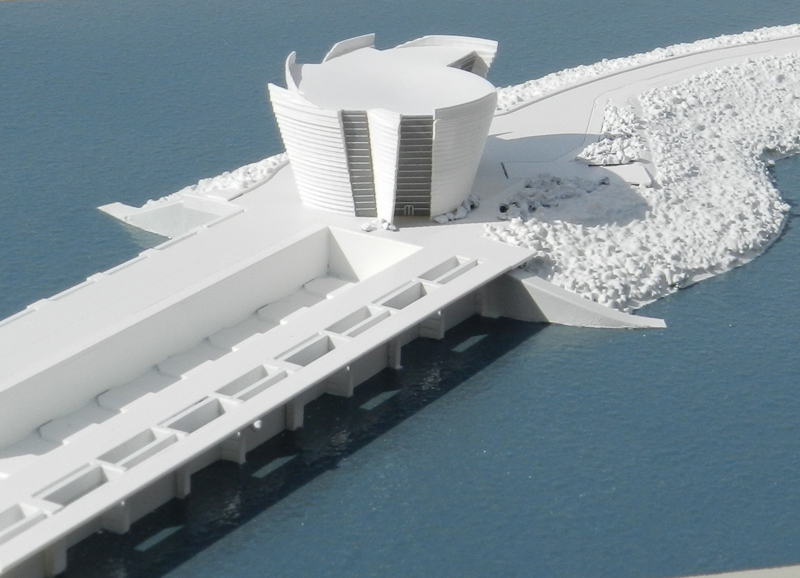 Llanelli Waterside Masterplan Model Commissioned by the Welsh Assembly Government through an exhaustive tendering process, this model's purpose was to illustrate the new infrastructure and planning proposals for a major new development area in the docks and coastal fringes of Llanelli, South Wales. The model showed new road links, new residential areas, and commercial development areas. It also used button-activated fibre optic lighting to highlight six different development zones. After completing these two white styled models of the Swansea Lagoons tidal energy project, we were surprised to discover they had been the focal point for a presentation to the Prime Minister David Cameron (apparently they couldn't tell us beforehand for security reasons). The models are both at 1:1000 scale and show two different areas of the proposed lagoon structure. If you click on the images to enlarge them you'll see that even at this small scale (1mm represents 1 metre) we can show a high level of detail.