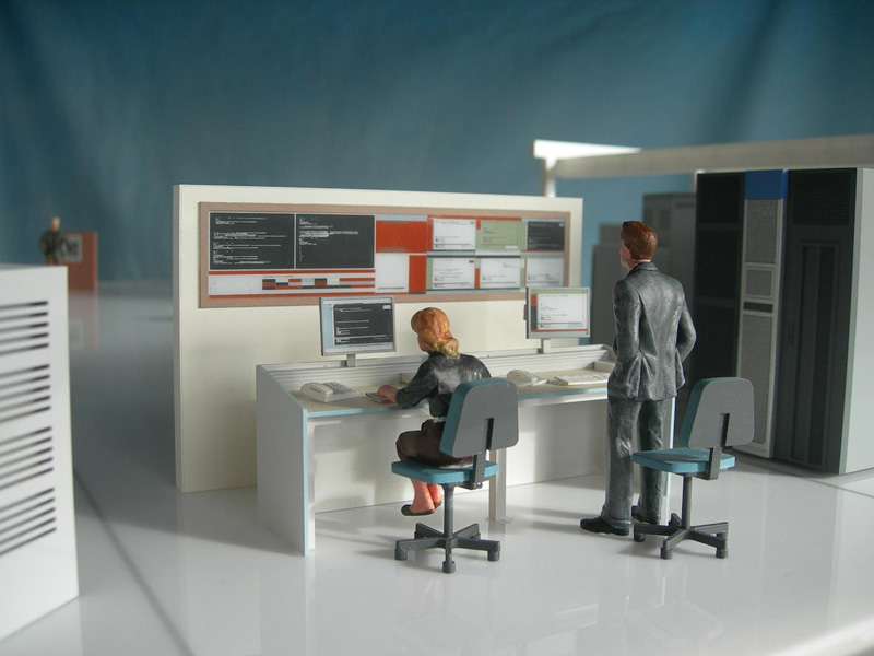 1:25 Scale Model of Data Centre for International Bank A large complex model representing the Data Centre systems for an international bank. The aim of this fully interactive model was to provide a visual demonstration of the complex networks involved in data handling and storage for the bank's various services. For more details visit "Recent Projects" and select November 2007.