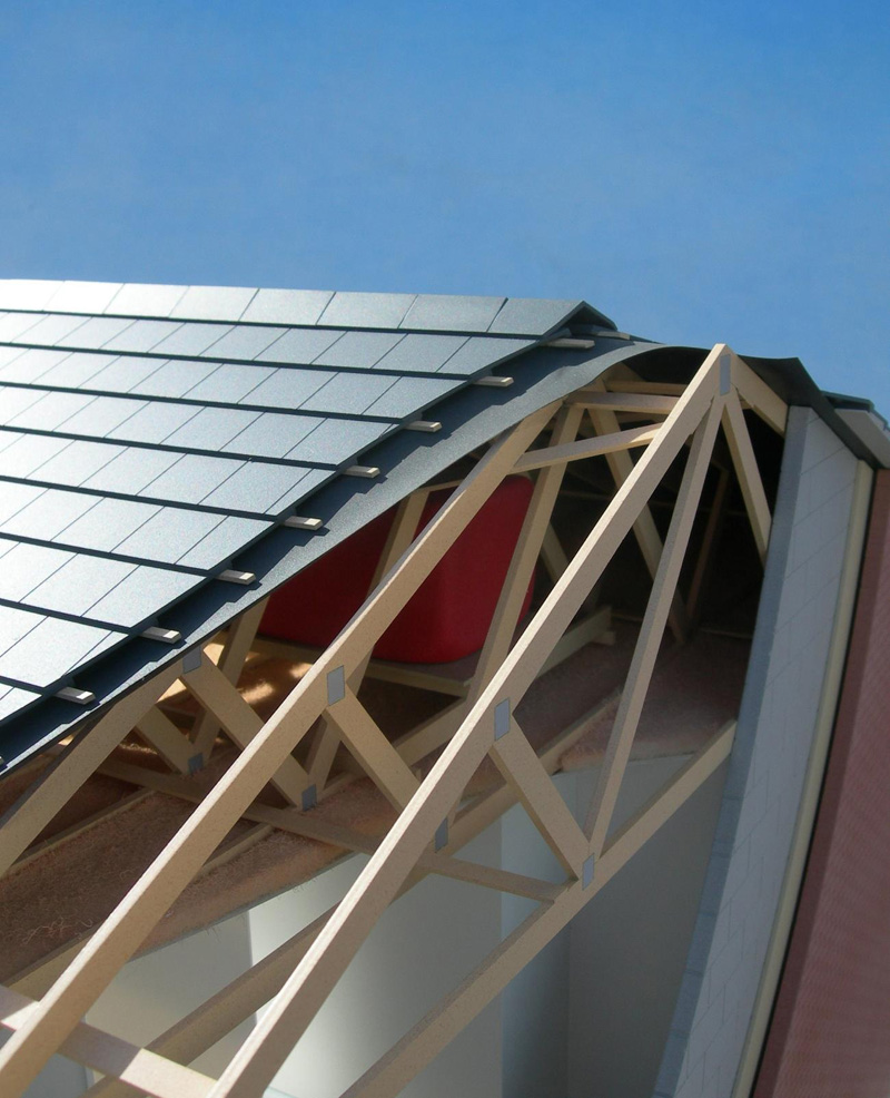 1:20 Scale Sectional Model of House Commissioned as a teaching aid, this cut-away model was designed to illustrate typical construction techniques in a standard domestic building. The client's aim was that the model could be used instead of site visits to clarify some fairly basic methods of construction. The model included details such as wall ties, staircase construction, and even roofing materials.