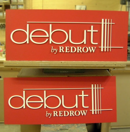 Debut The client needed two versions of this sign, in a hurry, for a major marketing event. The background colour had to be right and the letters had to be cut from solid acrylic for long term durability.