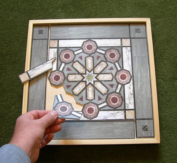 Jigsaw Puzzle This custom designed jigsaw puzzle is one of a set of four that were made as an educational exercise for children visiting a historic castle. The puzzle pieces are created from a decorative floor motif in one of the castle rooms.
