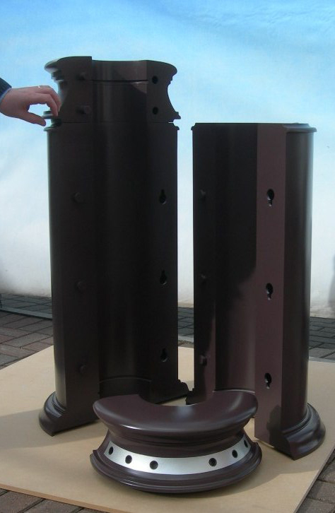Wrap-around Waste Bin prototype model – Scale 1:1 This model of a prototype wrap-around waste bin (for cigarette butts) was used to demonstrate how it could be retro fitted to any street furniture or signs. The client needed a working mock-up he could take to meetings to show how it could be easily locked together around different sized poles/posts. The design required the model to be made in four sections that fitted perfectly together. (Read the client's positive comments on our Testimonials page).