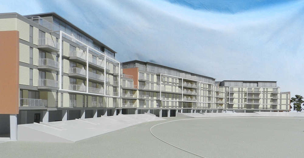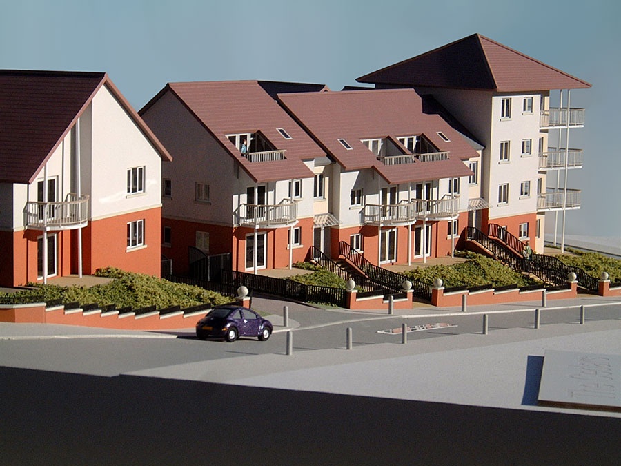 Low Rise Apartments With a sloping site, complex multi-levelled roofs and numerous balconies and setbacks, there was a lot of structural detail that needed to be shown in this model at 1:100 scale. The client was very pleased that the model illustrated so clearly and instantly the different sections of the development.