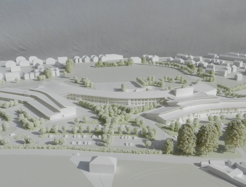 White School Model We've produced many of these white styled models because they're ideal for presenting a non-specific, general overview of large spread out sites, such as this proposed school development. The monochromatic styling keeps the costs down and the small scale keeps the model base to a compact, portable size – approx 800mm x 700mm in this case. Despite the small scale, we are able to show a high level of detail on the buildings including clear acrylic for windows.