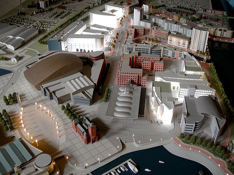 Cardiff Bay Marketing Model - Scale 1:500 Built to illustrate the proposed scale of several major development areas in a prime waterside location, this model used illumination to highlight the key sites in the project. Each of 11 different plots can be illuminated individually at the touch of a button.