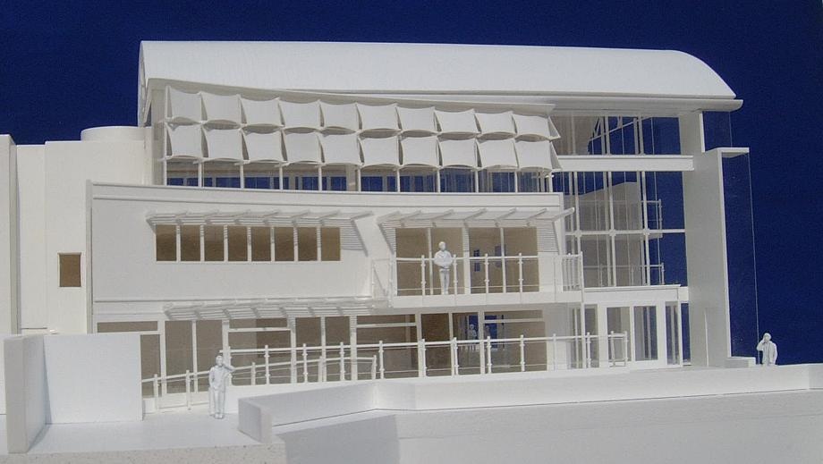 White Cut-away Model – Scale 1:100 An all white, part model built to illustrate the internal and external spatial arrangement for an extended café facility on a former industrial building. 1:100 is an excellent scale for showing internal views of buildings.