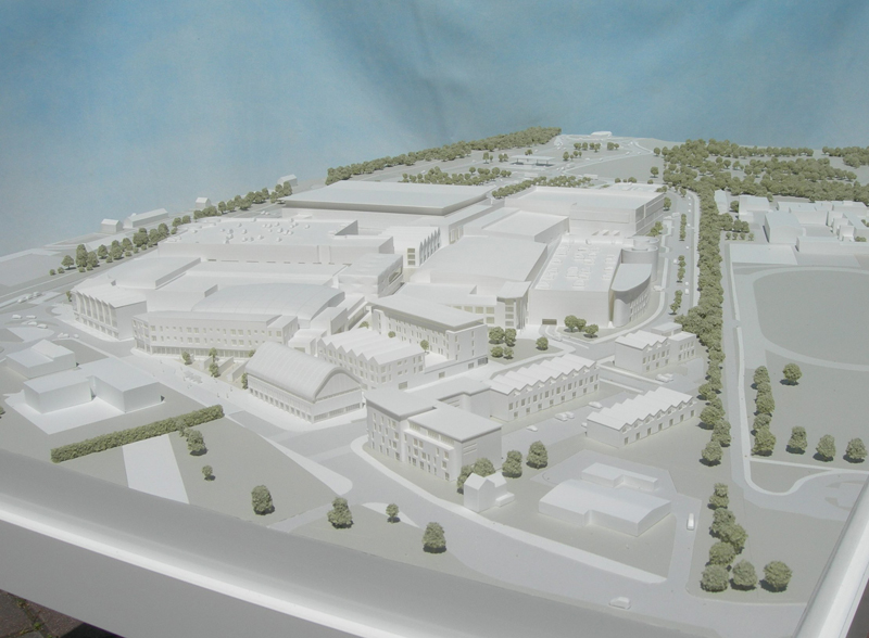 Masterplan Model for Proposed Retail Centre – Scale 1:500 From the photo it's very hard to appreciate that the buildings in this image are only approximately 20mm tall, such is the level of detail we are able to achieve at this very small scale. Showing the general overview of a proposed new town centre development this is an unusual project in that these type of masterplan models typically only have simplified massing blocks for the buildings.